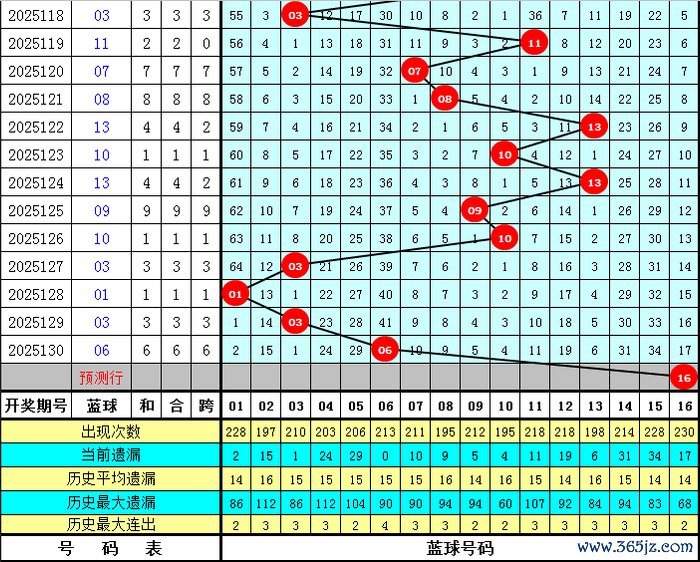 单注保举:09 19 24 25 28 30 + 16